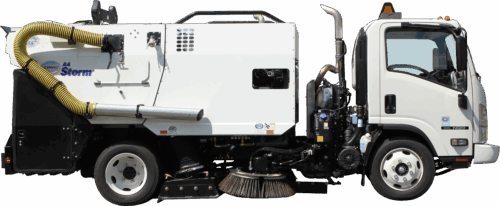 The Schwarze A4 Storm is a compact, non-CDL chassis mounted regenerative air street sweeper that is ideal for smaller towns, university campuses and large industrial complexes. Its Isuzu NPR chassis offers unmatched maneuverability, operator visibility and comfort.